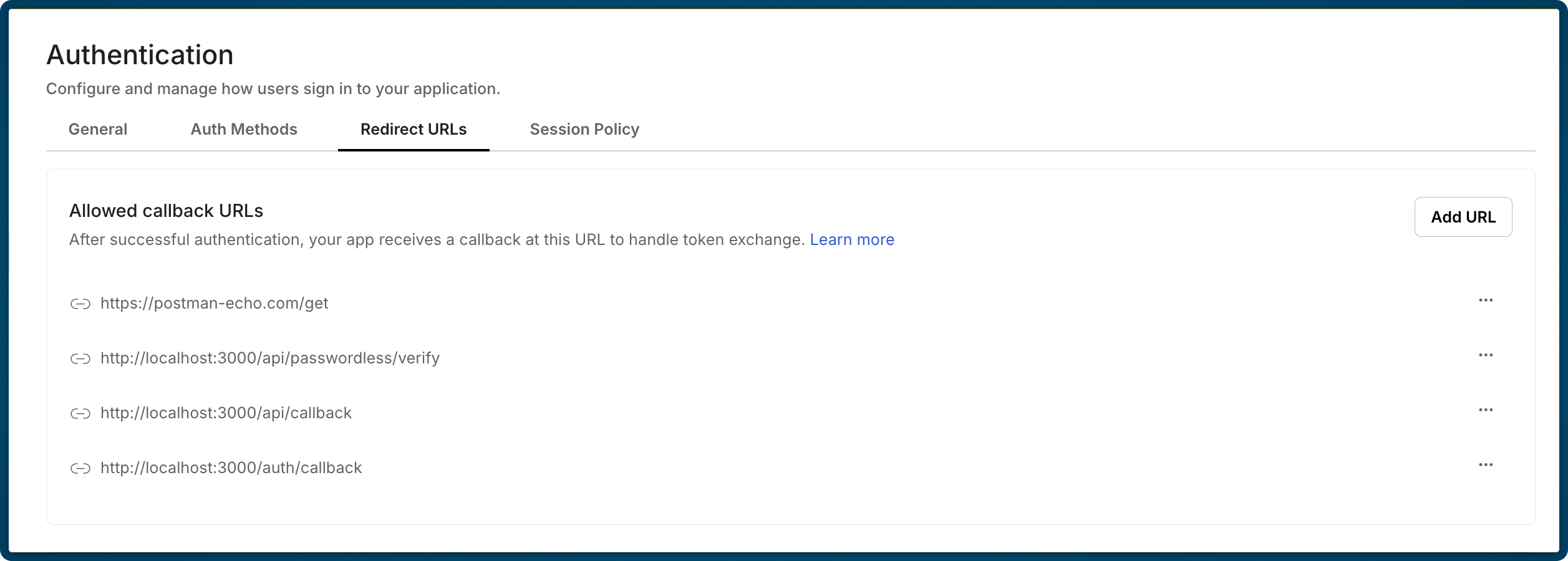 Go to Dashboard > Authentication > Redirect URLS > Allowed Callback URLs and add the callback endpoint.