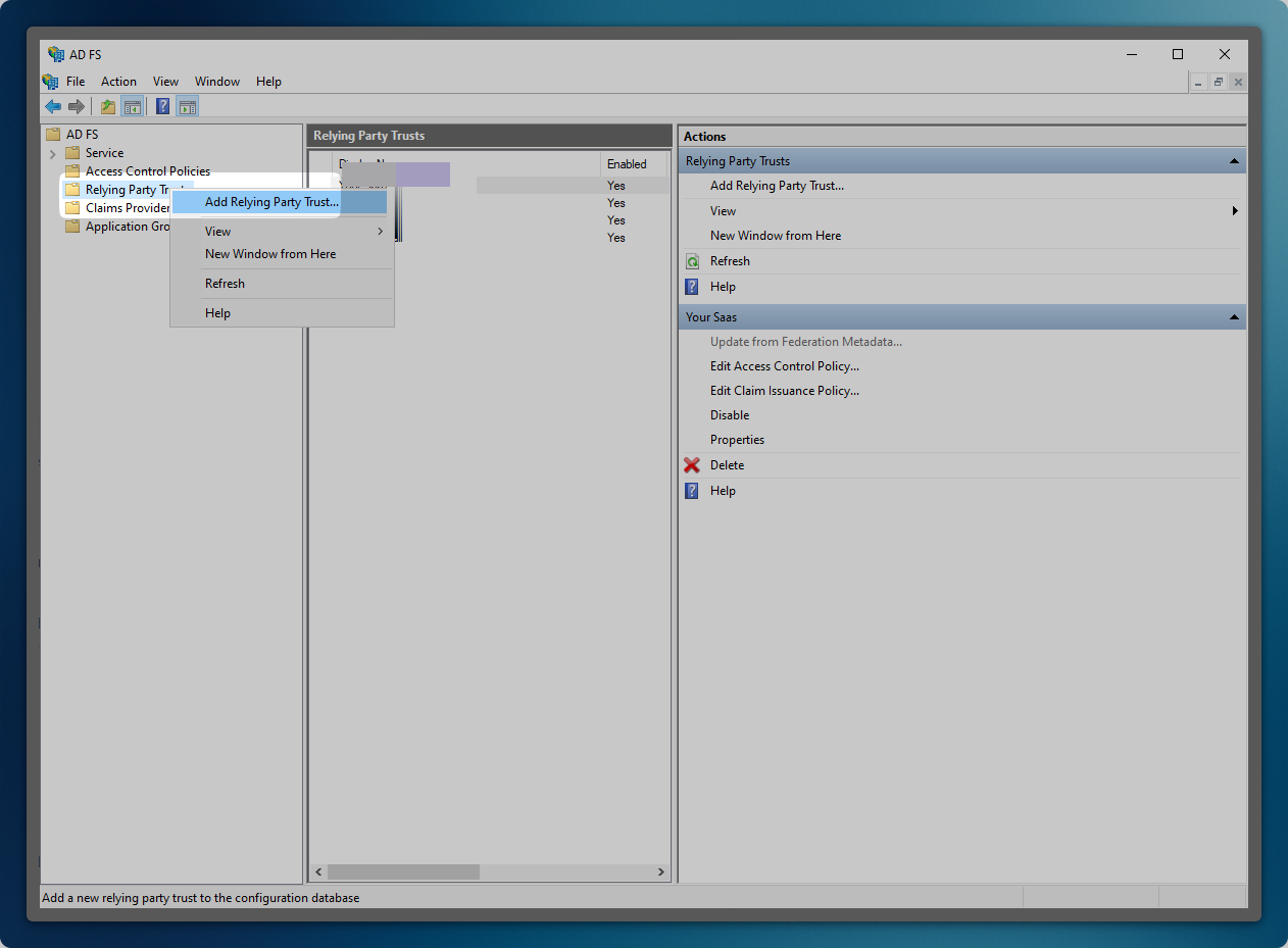 Section titled “Create a Relying Party Trust”- In the left navigation pane, expand ‘Trust Relationships’